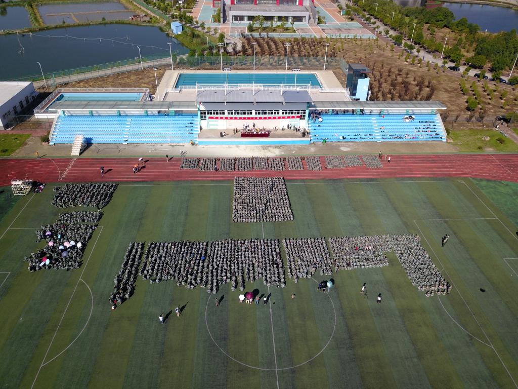 今年恰逢我校建校60周年,由百人组成的新生以排字方阵向学校献礼,通过姿势和队形的变换,摆出“10、9……2、1”,组成数字“60”,演示“责任·使命·追求”的校训字样,用汗水和行动展示了校训精神及对学校生日的美好祝福。