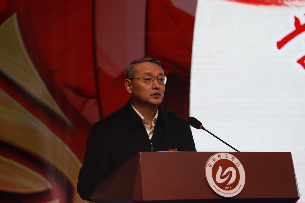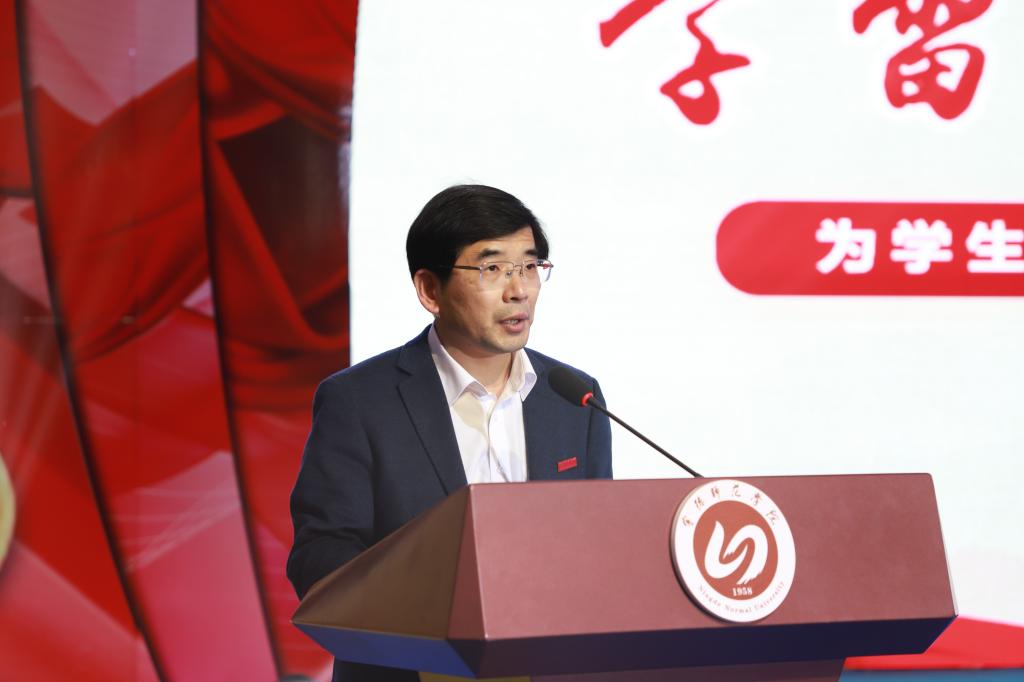 夏良玉代表校党委向长期以来学雷锋志愿服务的师生致以崇高的敬意,向获表彰的师生表示热烈的祝贺。他指出,全校上下在服务省运会、60周年校庆大型活动中顾全大局、服从分工、齐心协力,勇挑重任,形成谋大事、办大事、成大事的强大合力,体现了担当作为干实事、艰苦奋斗讲奉献、向上向善讲文明的精神风貌,这与“奉献、友爱、互助、进步”的志愿者精神是一致的,与“无私奉献、爱岗敬业、助人为乐、艰苦朴素”的雷锋精神也是相契合的。他就新时代如何弘扬雷锋精神提出四点要求:一要认真学习雷锋帮助他人、奉献社会、报效国家的志愿服务精神。师生要多进社区、进农村、进困难地区,从生活点滴入手,从身边事做起,随时随地帮助他人、奉献社会,让最需要帮助的群体感受到“春天般的温暖”。二要认真学习雷锋热爱劳动、艰苦奋斗、做螺丝钉的爱岗敬业精神。大力弘扬我校60年来形成的艰苦奋斗、担当作为、爱岗敬业的优良传统,立足本职、忠于职守、兢兢业业、精益求精,做“四有好教师”,当好学生“四个引路人”。三要让学雷锋成为培养时代新人、落实立德树人根本任务的特色载体。要从有助于坚定学生的理想信念、厚植学生的爱国主义情怀、加强学生的品德修养、增长学生的知识见识、培养学生的奋斗精神、增强学生的综合素质六个方面去下功夫,从育人角度设计开展多样化的志愿服务活动。四要把学雷锋志愿活动纳入第二课堂管理,纳入育人体系管理,构建宁师特色的志愿服务品牌,推进学雷锋志愿服务活动制度化常态化,让雷锋精神在学校蔚然成风。